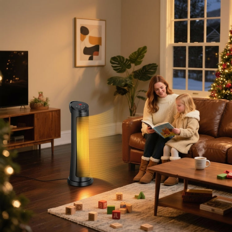 Warmth that follows the room—not just the heater. 60° oscillation smooths out cold corners, while the 1–24 h timer and remote keep comfort on your terms. Safety shutoffs stay on guard, so you can switch off and unwind.